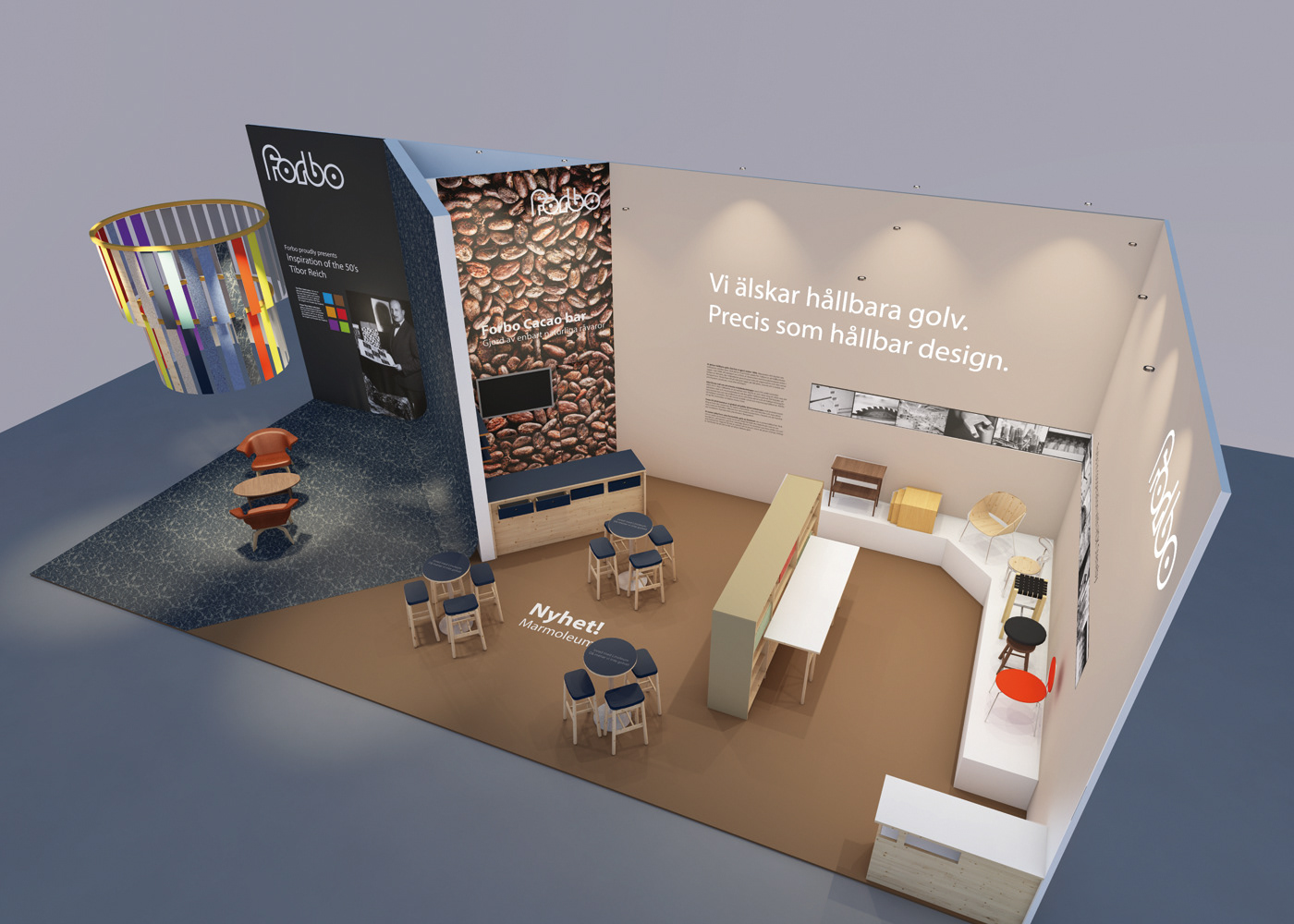 3D-overview over Forbo´s stand at Stockholm Furniture & Light Fair 2017.