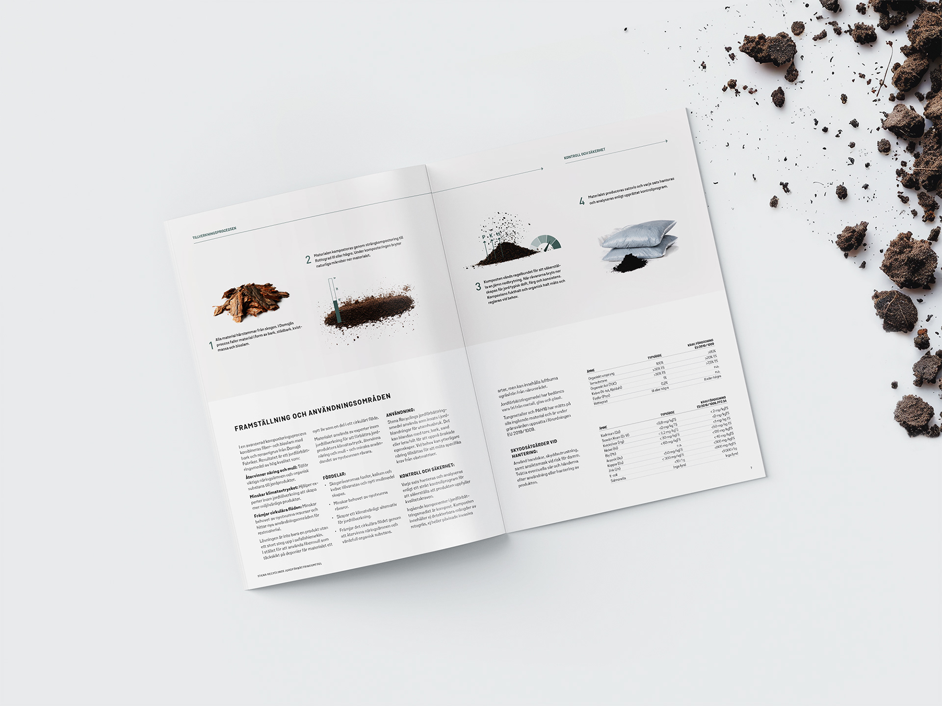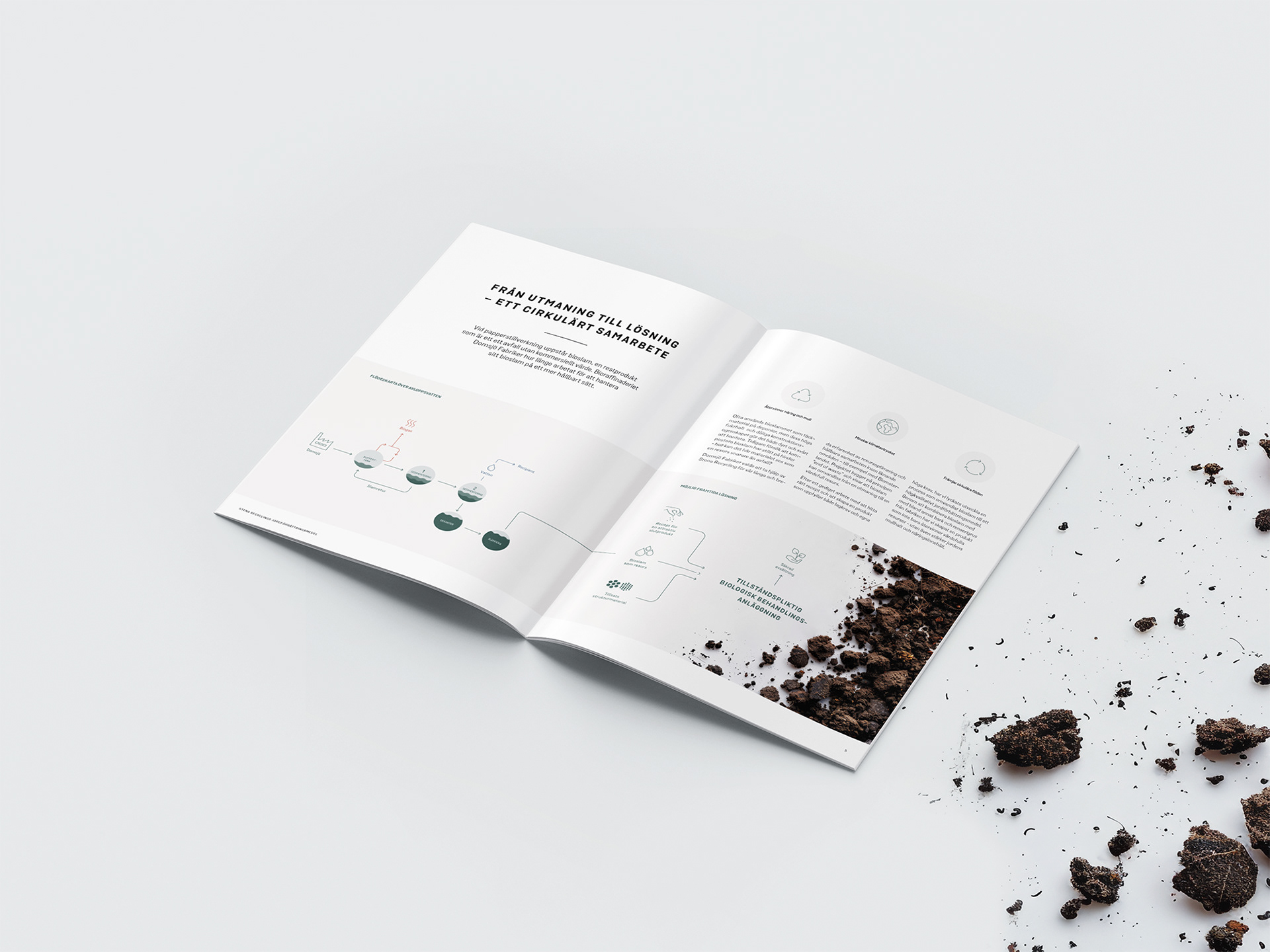A brochure that explains Stena recycling process that transforms by-products from the papermaking process into a high-quality soil improver.